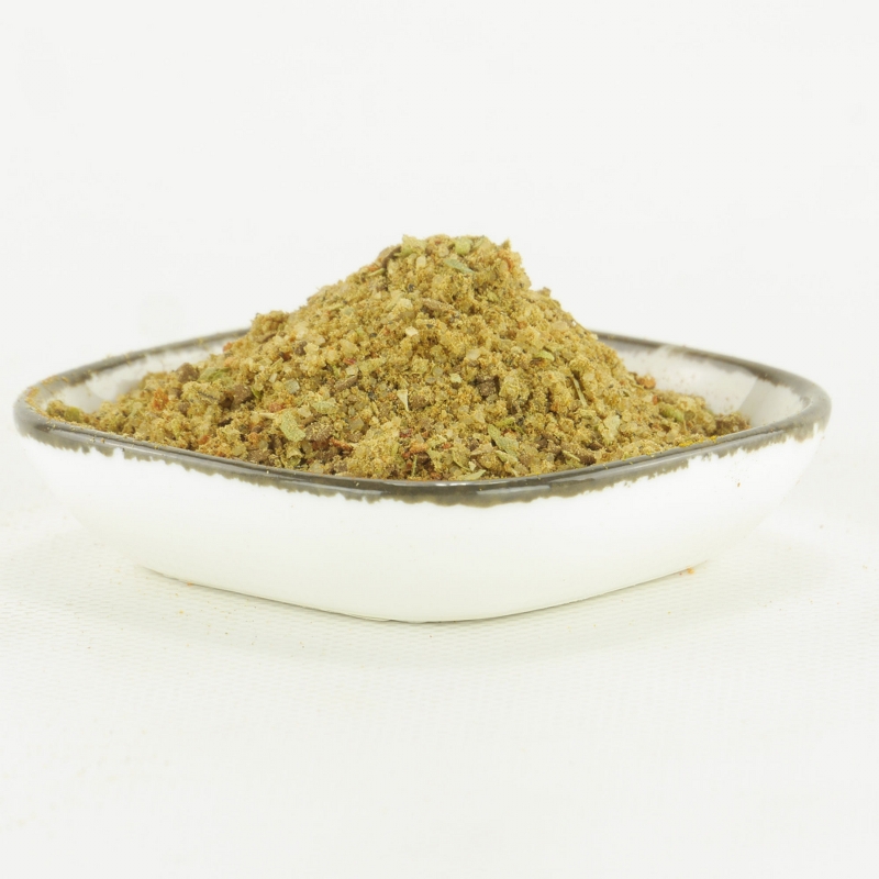 Sale marino, zucchero di canna, origano, pepe, caffè istantaneo (4,5%), polvere di pomodoro, peperoncino, cipolla, aglio.