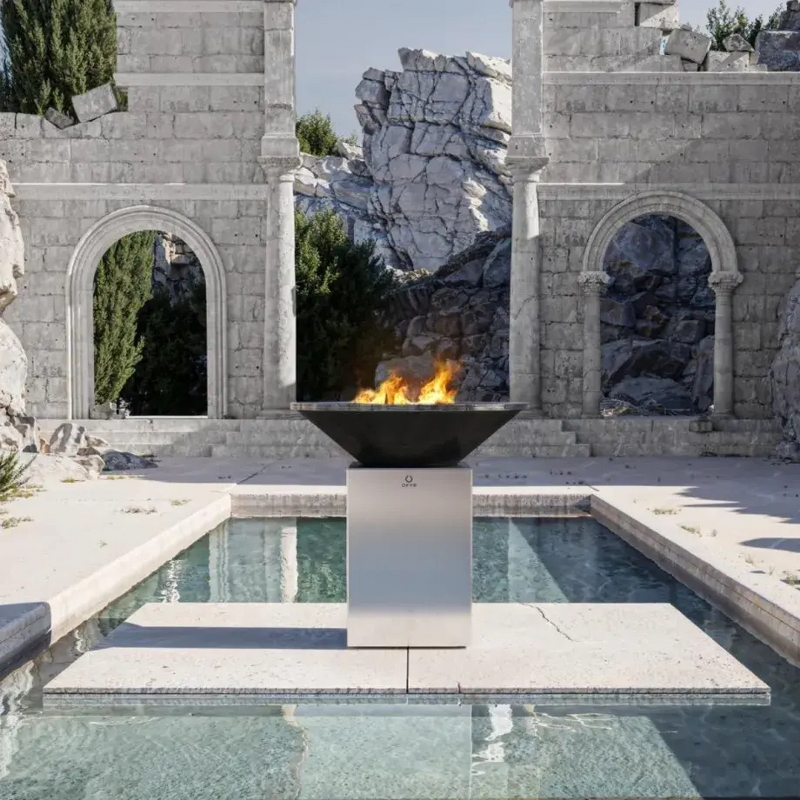 Con la sua piastra circolare e il caratteristico braciere conico, OFYR consente di grigliare, rosolare o cuocere lentamente sfruttando la sola energia della legna.