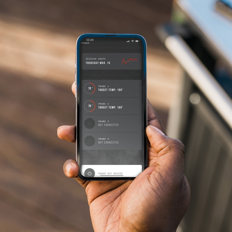 - Imposta la temperatura e il tempo di cottura, ricevi avvisi, monitora fino a 4 sonde per la carne e scopri nuove ricette utilizzando l'app Masterbuilt compatibile.