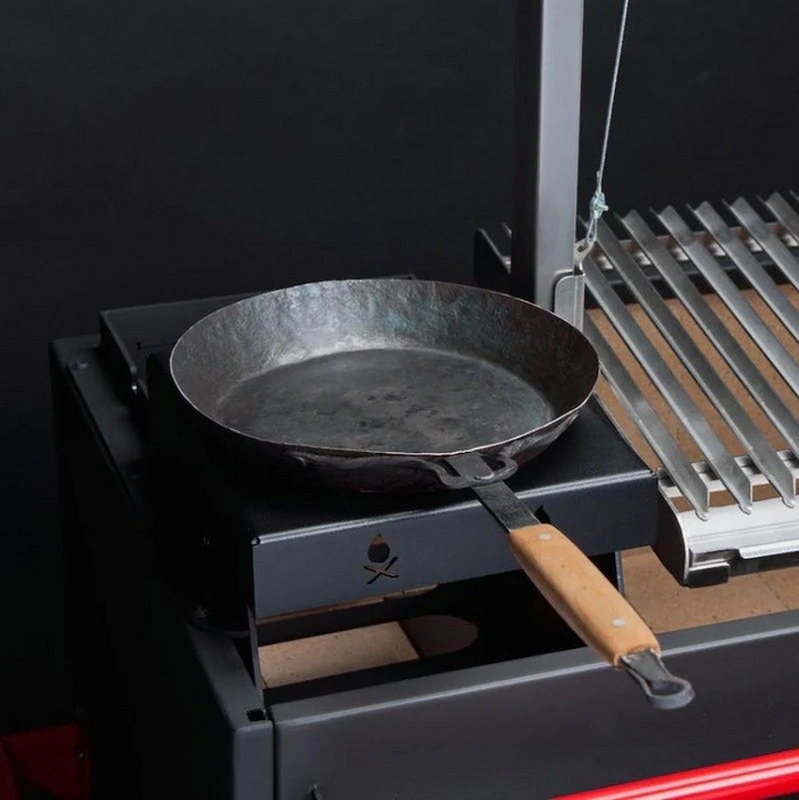 Il nostro accessorio amplia enormemente le possibilità durante l'Asado. Mentre la carne cuoce sulla brace, si possono contemporaneamente posizionare diverse padelle sull'accessorio e cucinare altri piatti o contorni. Così il Brasa diventa una cucina completa con tutto il necessario.