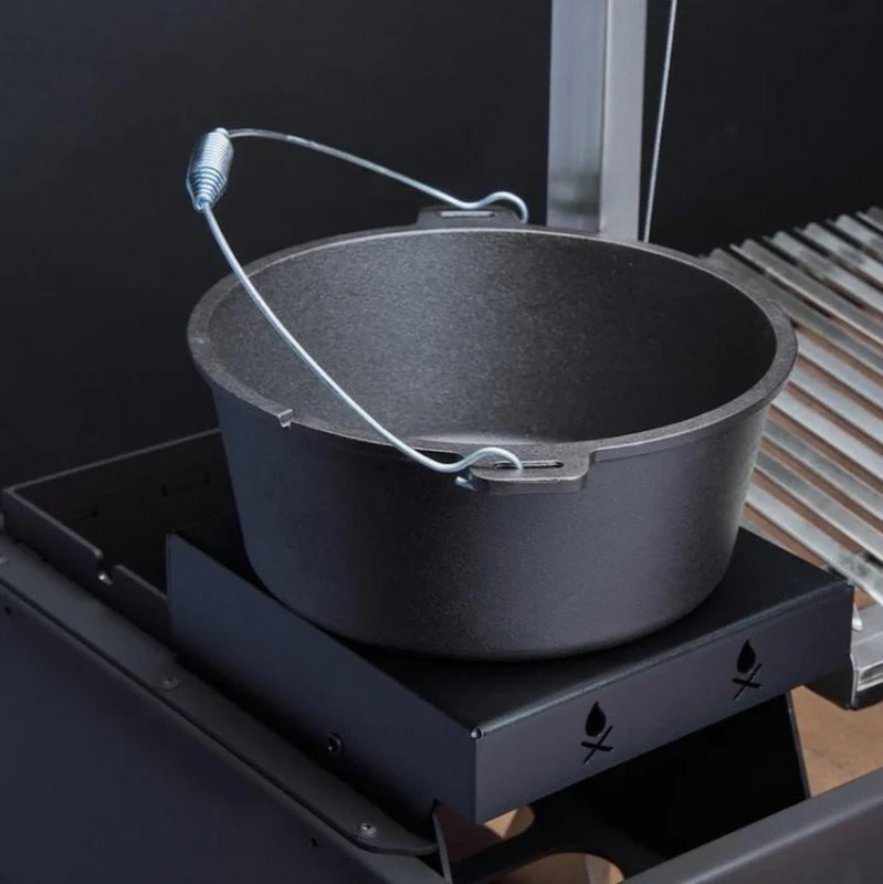 Il supporto si adatta perfettamente al brasero sul Brasa. In questo modo è facile posizionare la padella, il wok o il Dutch oven senza sforzo.